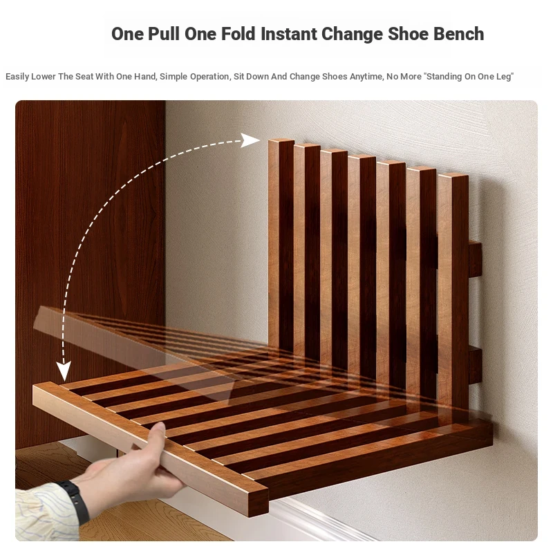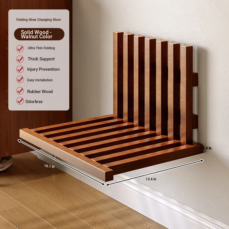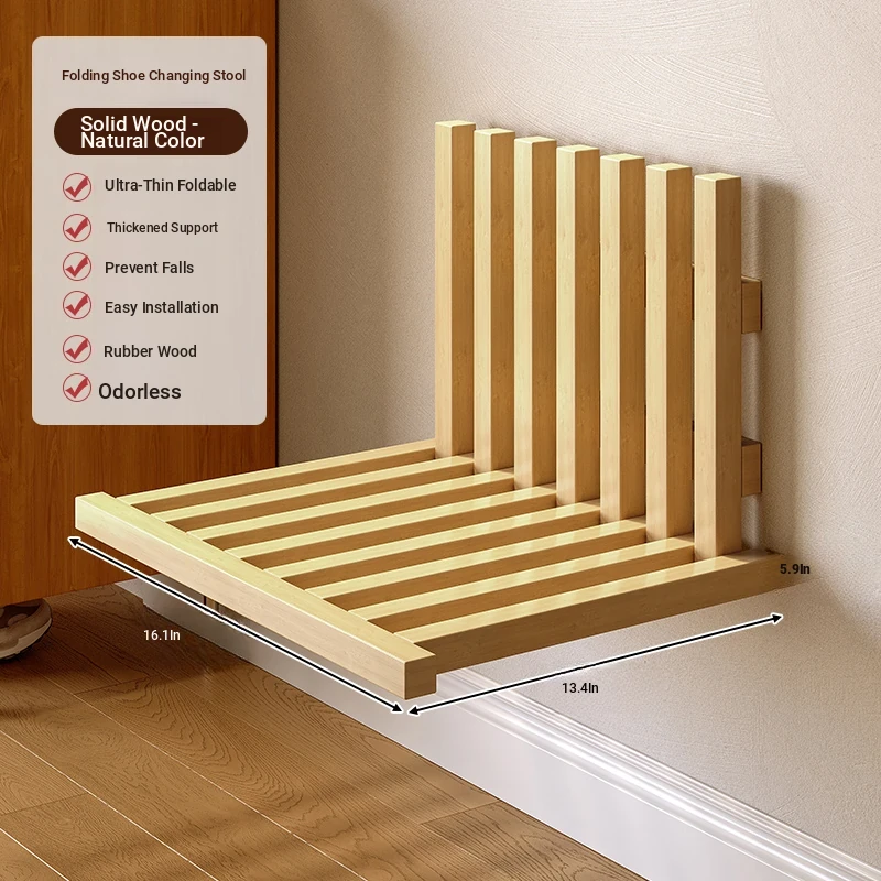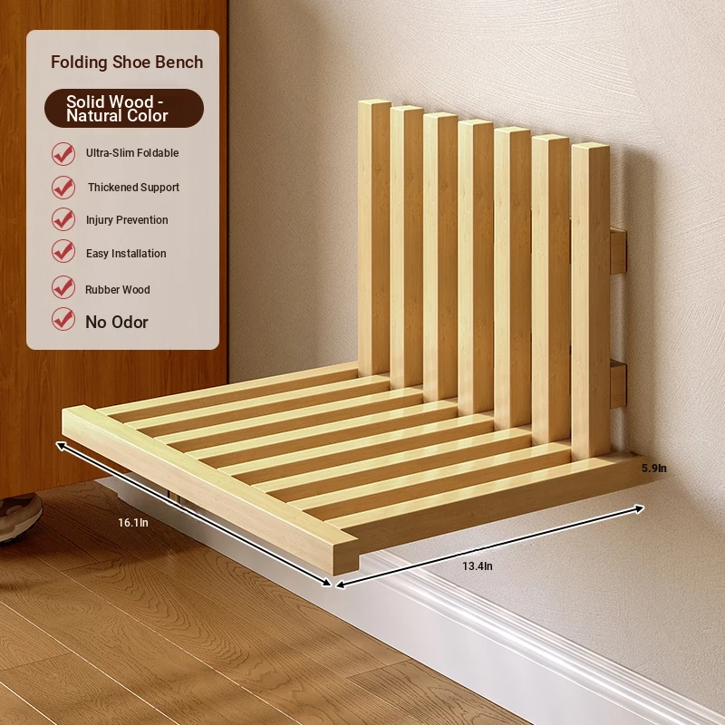 Foldable Wall-Mounted Shoe Bench for Entryway - Stylish and Space-Saving Wooden Folding Stool for Home, Ideal for Shoe Changing at the Door, Bathroom, and More!