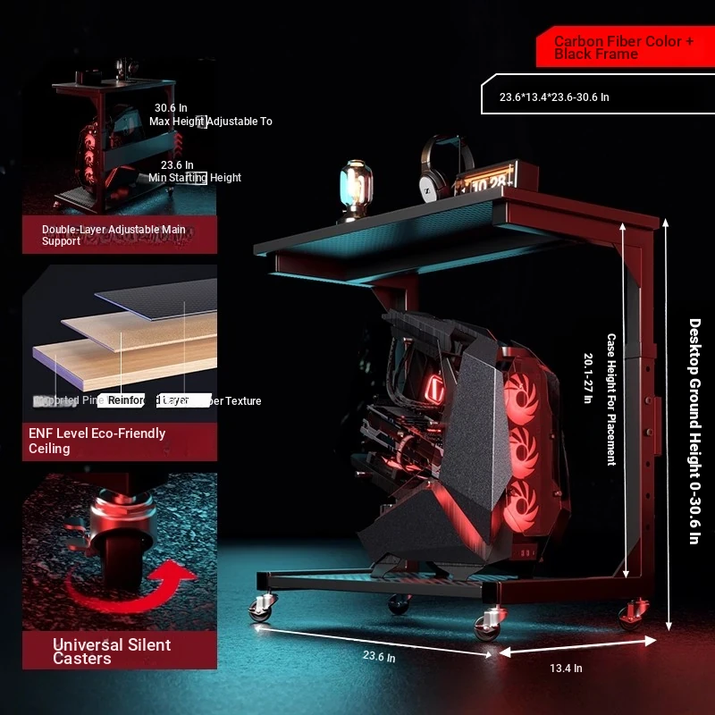 【Extreme Style ⭐ 20.08in-26.97in Floor Height] Carbon Fiber Color_Thickened 0.71in Solid Wood Ecological Board