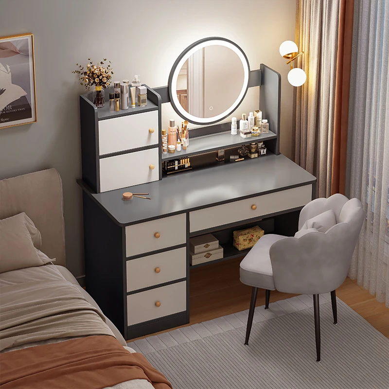 Modern Minimalist Vanity Table for Bedroom - 2025 New Luxury Design for Small Spaces, Multi-functional Dressing Table with Desk and Storage Cabinet