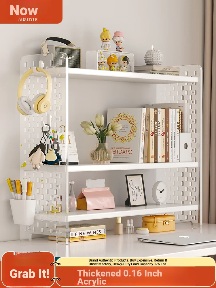 Acrylic Pegboard Desktop Organizer - Multi-Layer Bookshelf for Home and Students, Perfect for Desk Storage and Office Organization