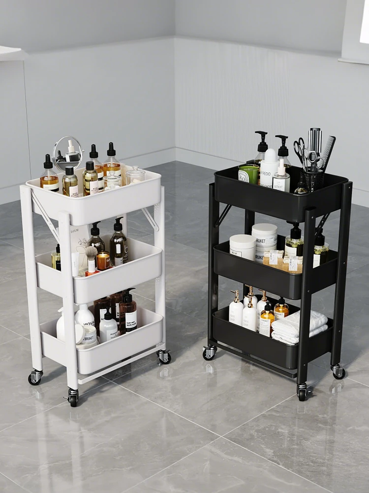 Beauty Salon Trolley Cart - Folding Rolling Storage Cart for Hair and Nail Salons, Convenient Mobile Tool Organizer on Wheels