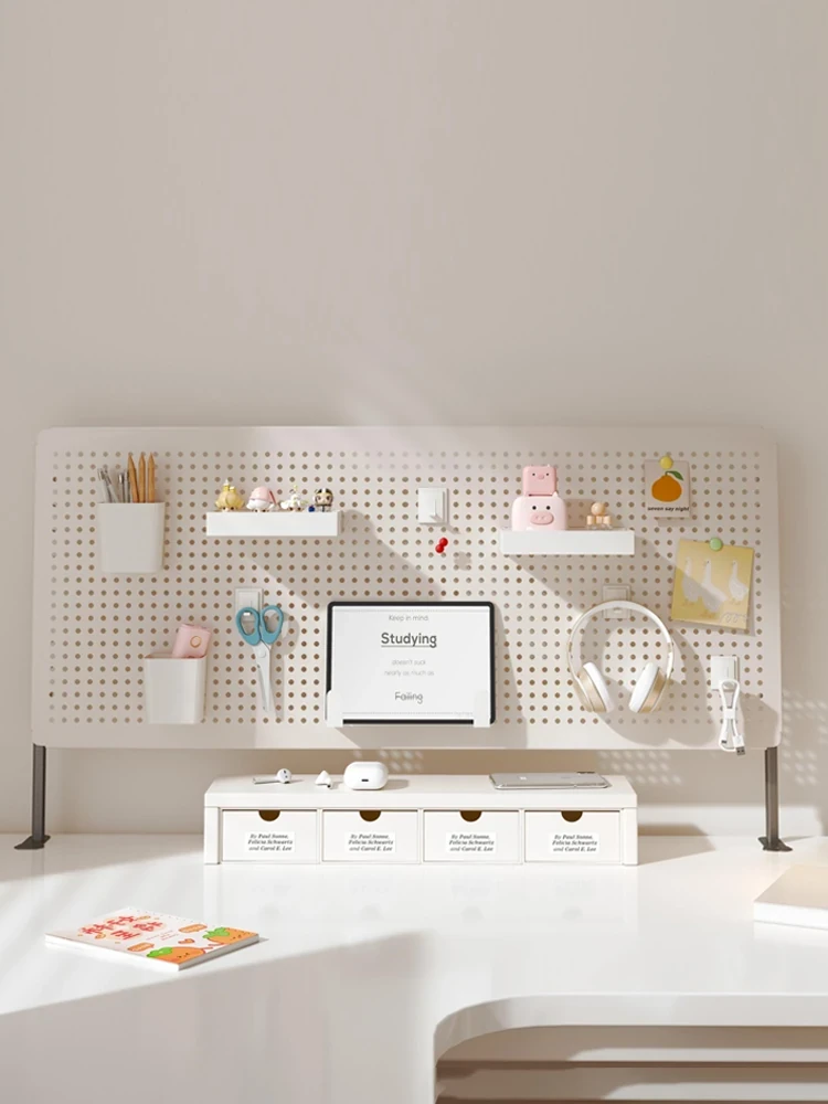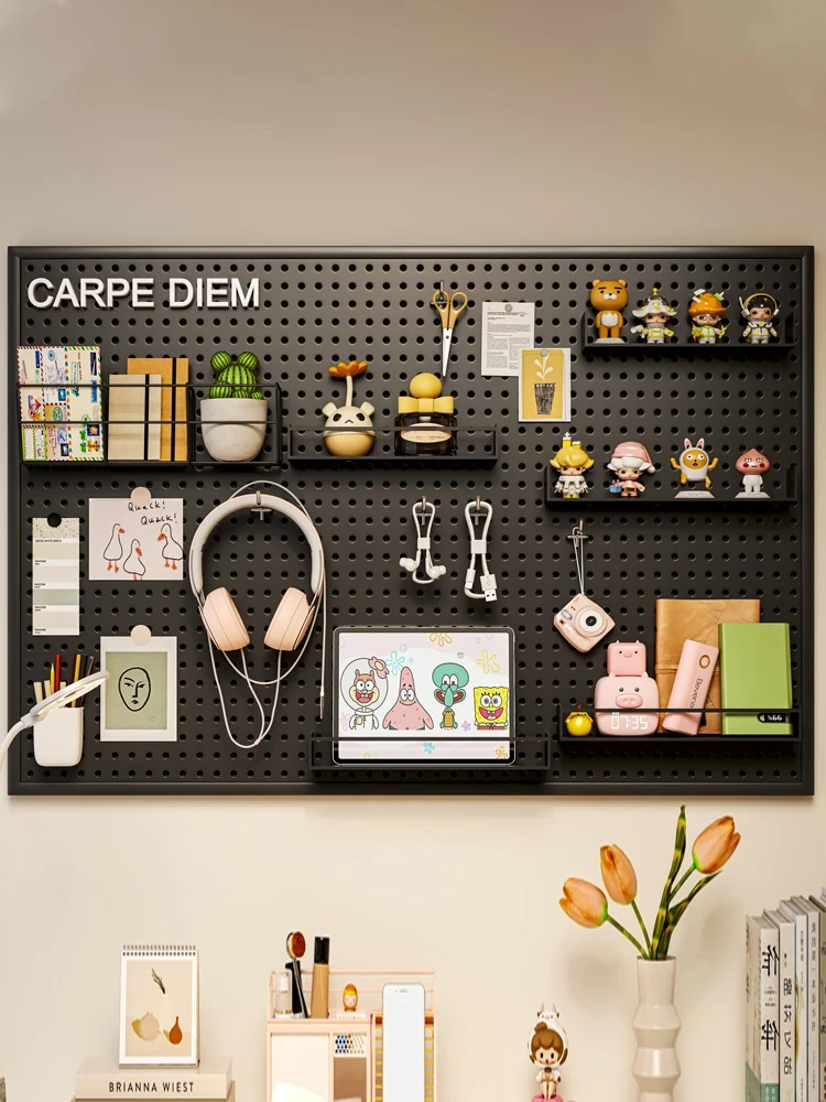 Student Desk Metal Pegboard - No Drill Wall-Mounted Storage Rack for Dormitory, Multi-Functional Display and Organizer Board
