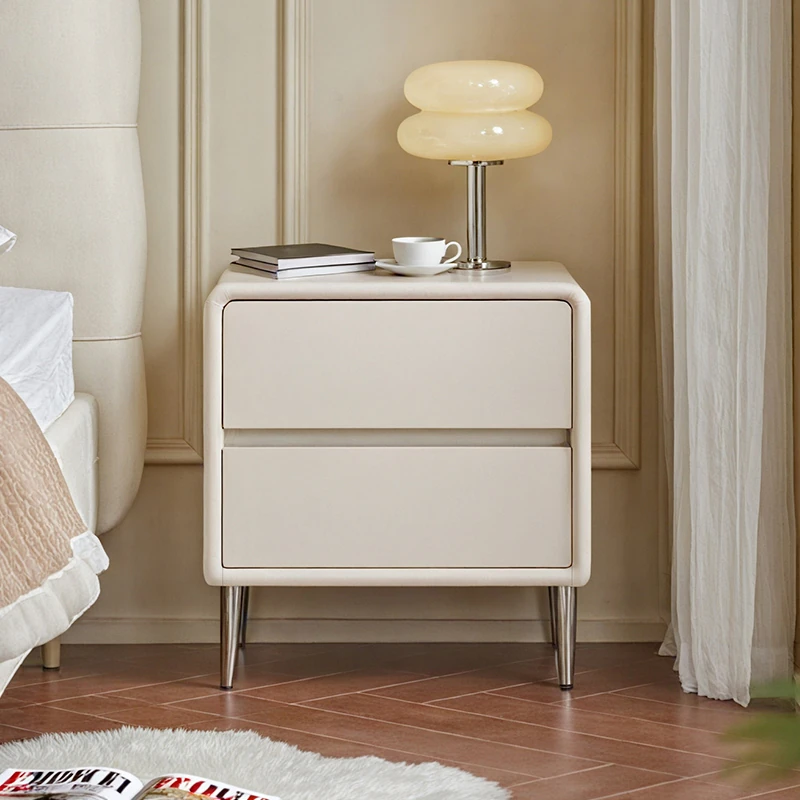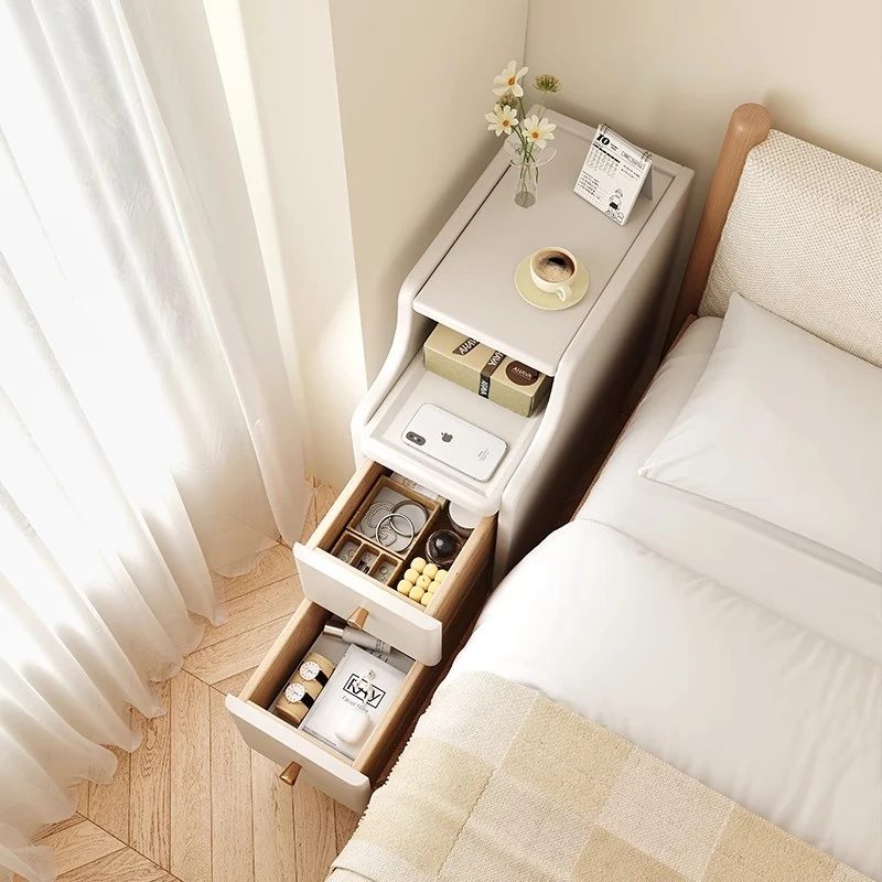 2025 New Cream Style Solid Wood Nightstand - Elegant and Luxurious Small Bedside Storage Cabinet for Home Bedroom