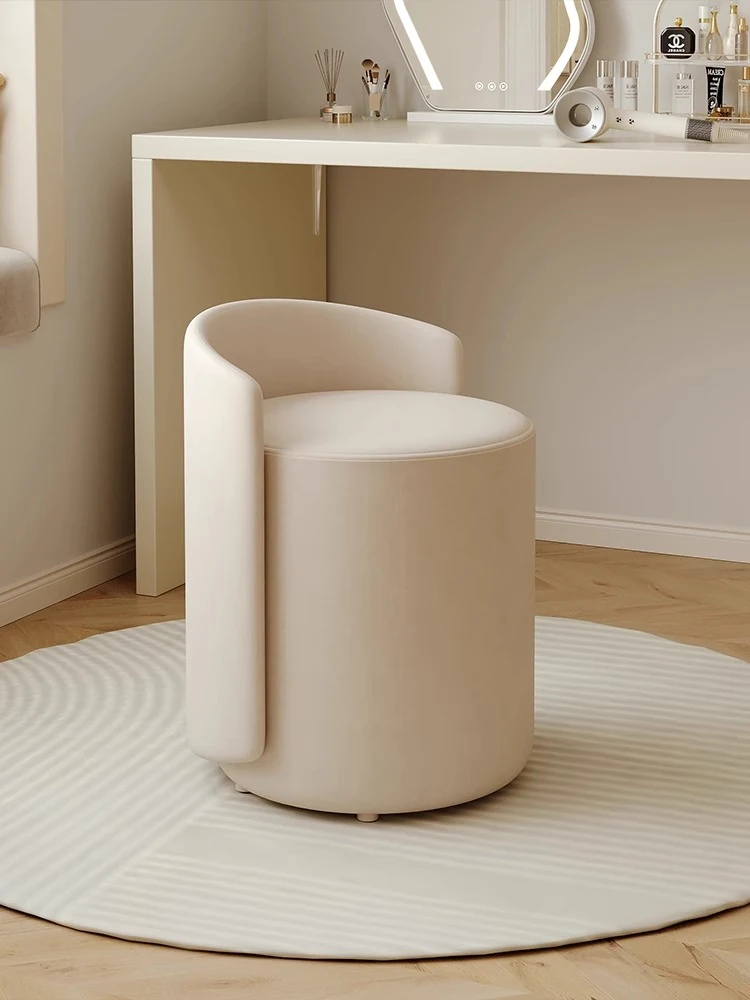 Chic Makeup Vanity Stool for Girls - Elegant Home Dressing Table Chair with Backrest, Modern Minimalist Round Ottoman, Perfect for Bedroom Decor