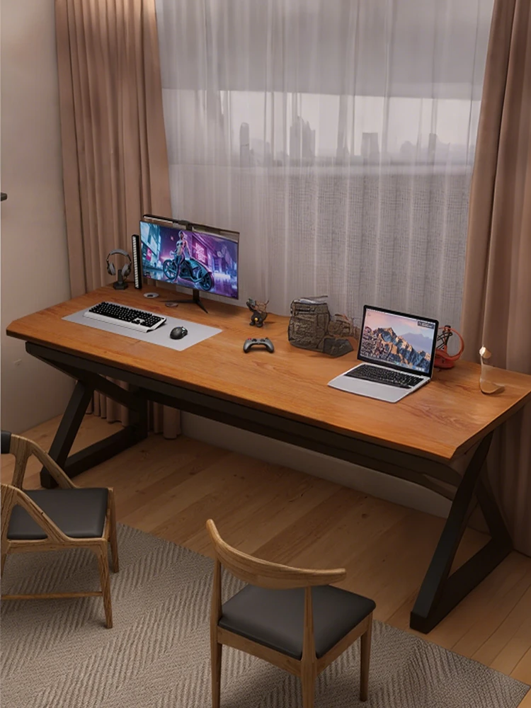 Solid Wood Double Computer Desk - Versatile Home Office Table for Bedrooms - Spacious Workstation for Adults - Simple Design for Effortless Productivity