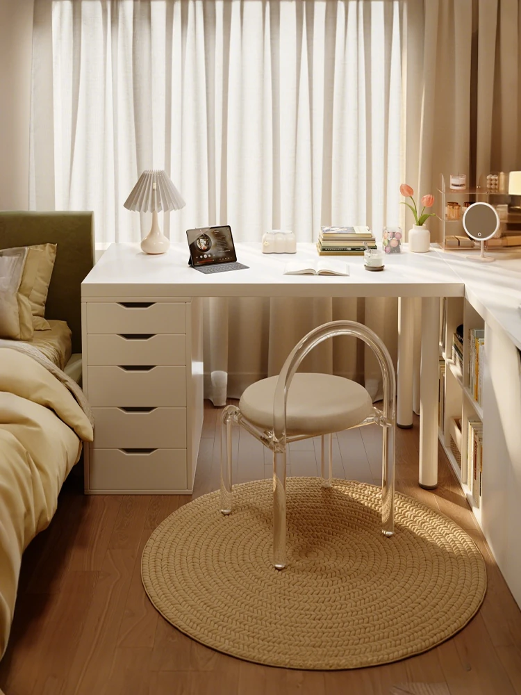 Creamy Style Bedroom Desk and Vanity Combo - Perfect Home Office Writing Table for Women, Ideal for Study and Work!