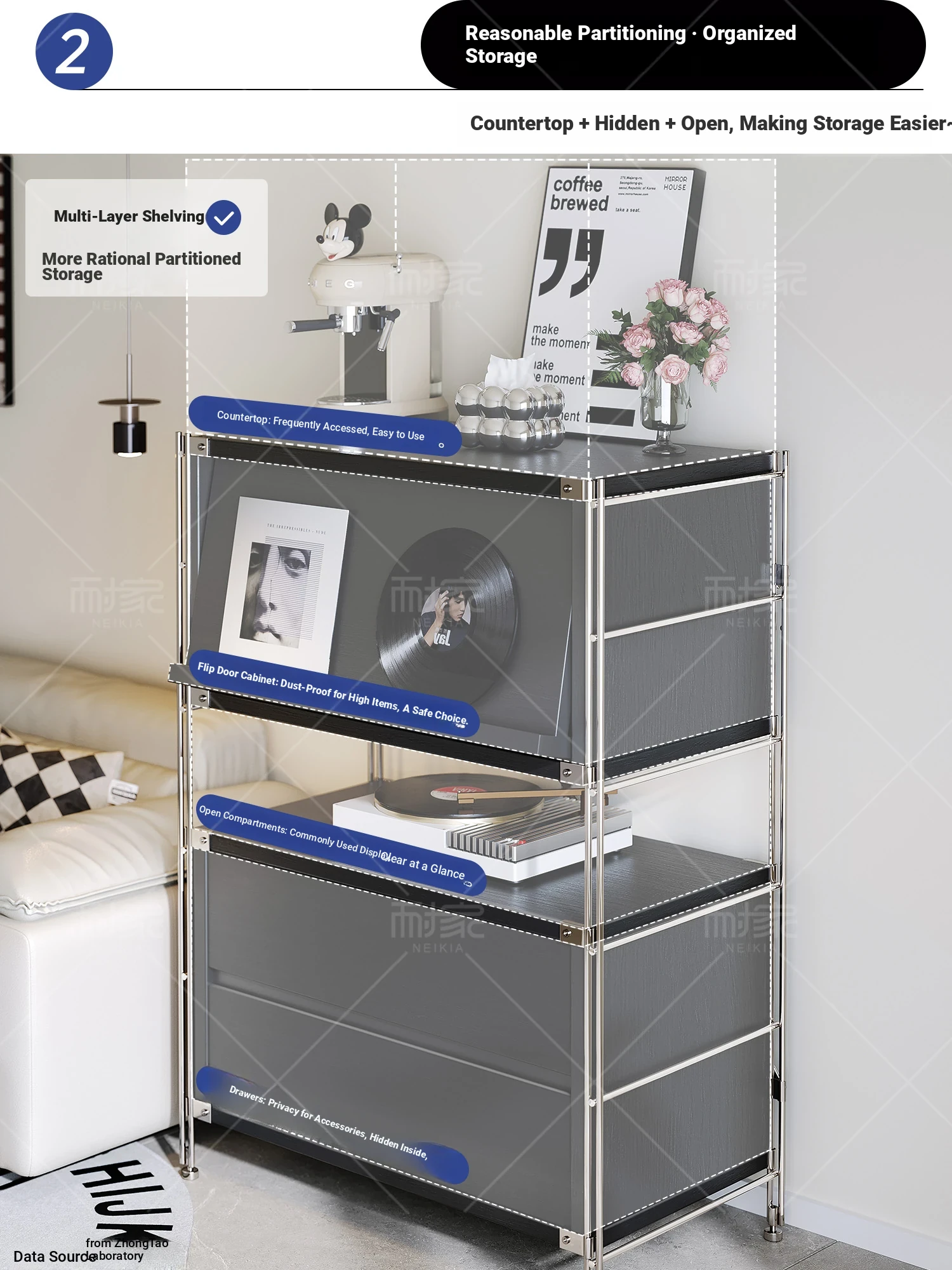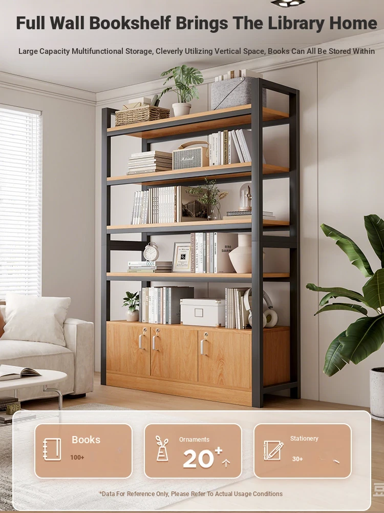 Multi-Layer Steel-Wood Wall-Mounted Bookshelf and Storage Cabinet - Stylish Home Organizer with Lockable Compartments for Living Room and Display Purposes