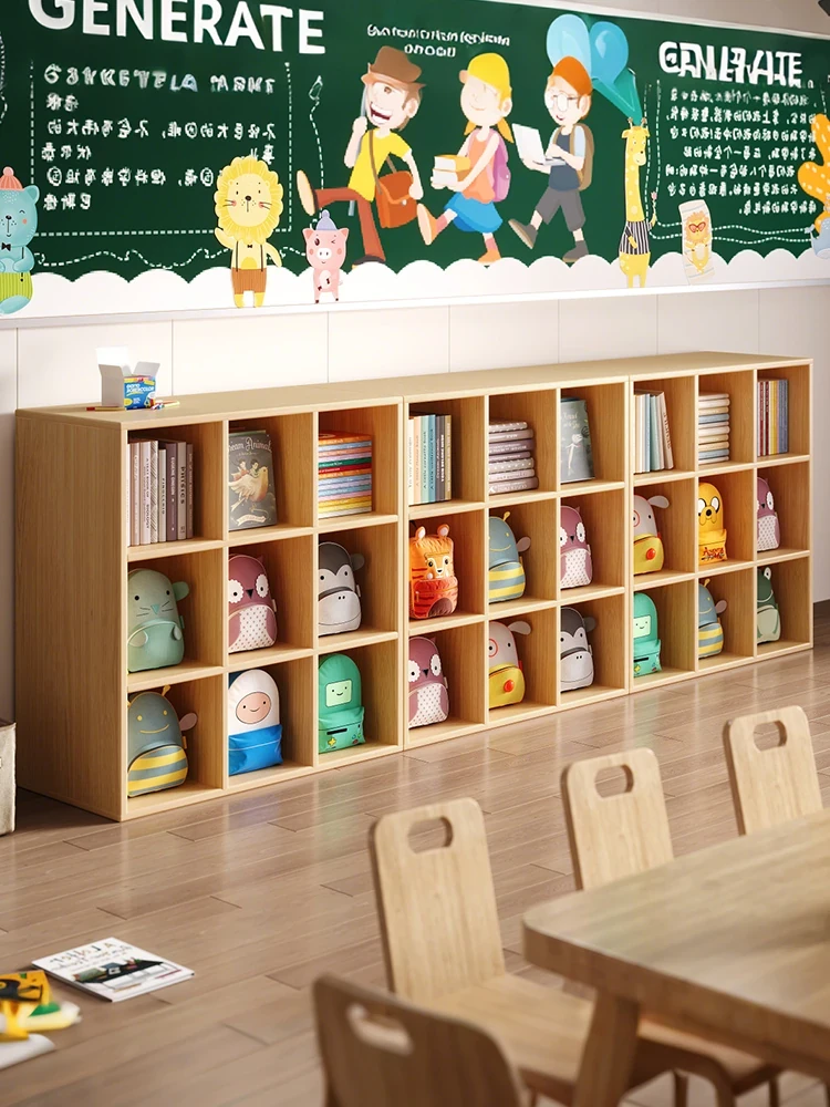 Versatile Floor Bookshelf and Storage Rack for Classrooms - Low Cabinet Ideal for Kindergarten, Book Bag Storage, and Wall-Mounted Design for Space Efficiency