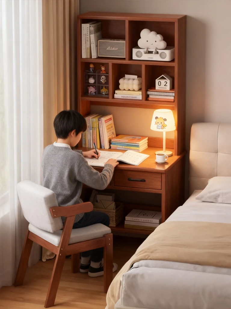 Solid Wood Desk and Bookshelf Combo - Ideal Study Table for Students, Compact Bedside Computer Desk for Small Spaces, Perfect Writing Desk for Kids