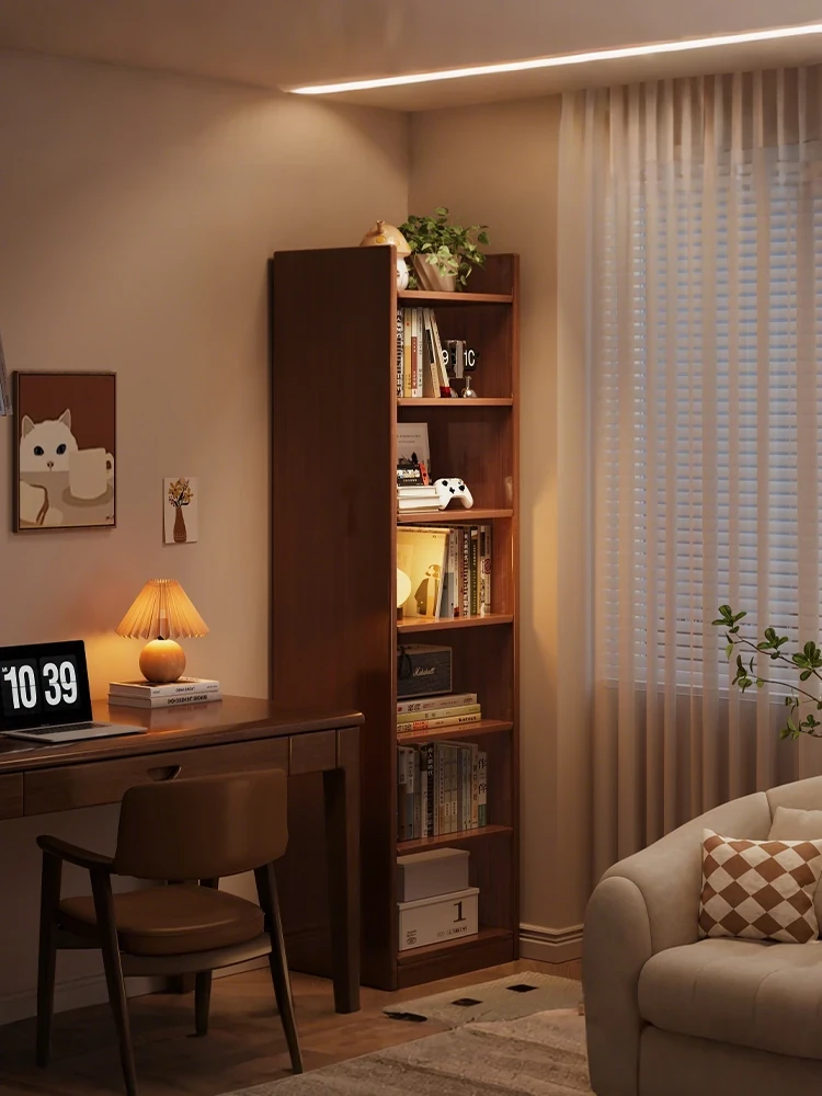 Solid Wood Eco-Friendly Bookshelf & Storage Rack - Floor Standing, Multi-Layer Design for Home Use, Wall-Mounted for Bedroom, Corner Narrow Cabinet for Efficient Organization