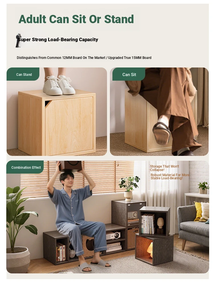 Versatile Solid Wood Grid Cabinet - Customizable Small Storage Unit for Bay Window, Bookshelf, Narrow Console, and Low Storage Solutions. Perfect for Organizing Your Space!