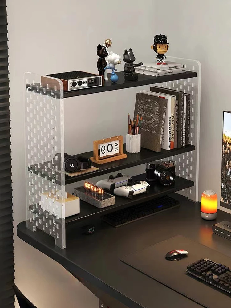 Gaming Desktop Organizer - Acrylic Bookshelf & Pegboard Storage Rack for Computer Desk - Stylish and Functional Display Shelf for Gamers