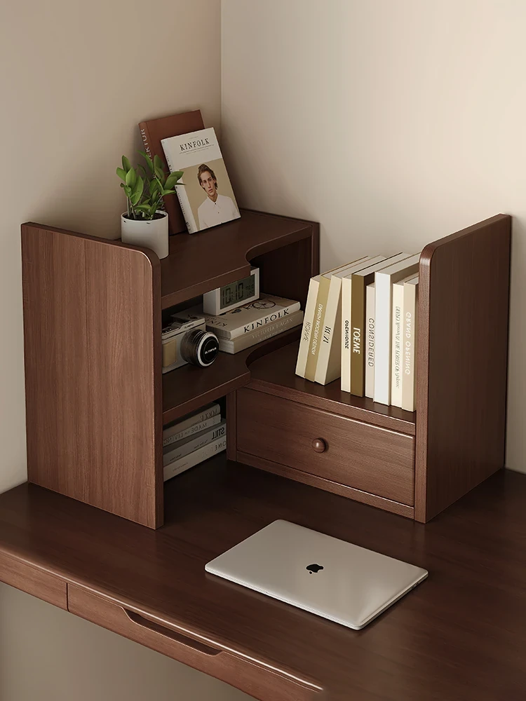 Vintage Solid Wood Bookshelf - Expandable Corner Multi-Layer Storage Rack for Desktop, Ideal for Office Workstations and Home Decor, Stylish and Functional Organizer