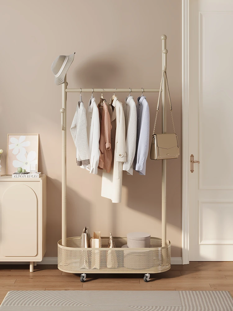 Creamy Wind Floor Clothes Rack - Stylish Indoor Hanging Stand for Bedroom, Perfect for Nighttime Outfit Storage, Portable and Convenient Coat Hanger for Home Use