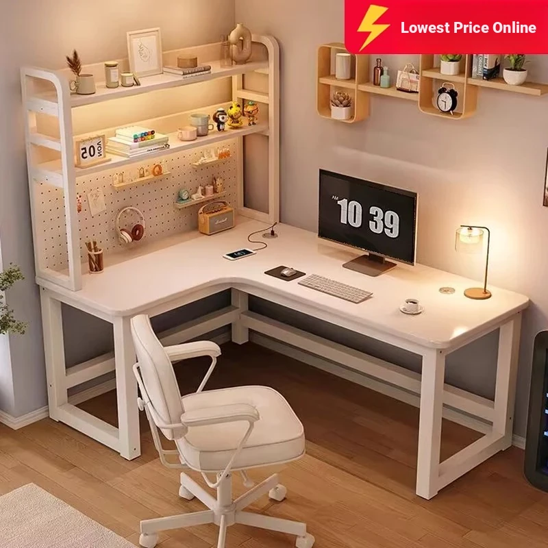 L-Shaped Corner Desk with Bookshelf – Perfect for Students and Home Office Use, Stylish Computer Table for Bedrooms and Workspaces