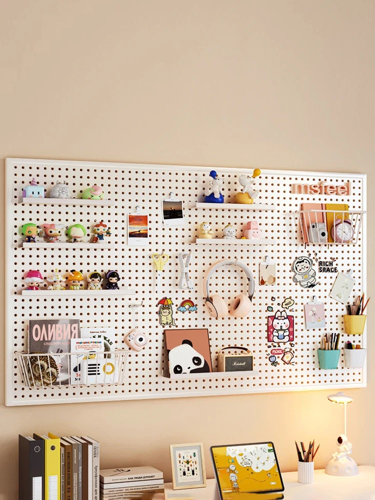 Wall-Mounted Pegboard Storage Shelf for Desks - Stylish Room Decor and Organization Solution for Children's Study Area - Perfect Display Rack for Desktop Essentials