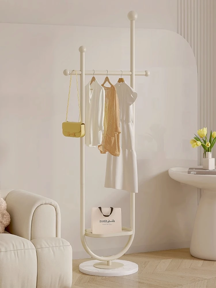 Trendy Creamy Windbreaker Coat Rack - Space-Saving Metal Floor Stand for Bedroom, Elegant Yet Simple Design for Home Organization and Easy Clothing Storage