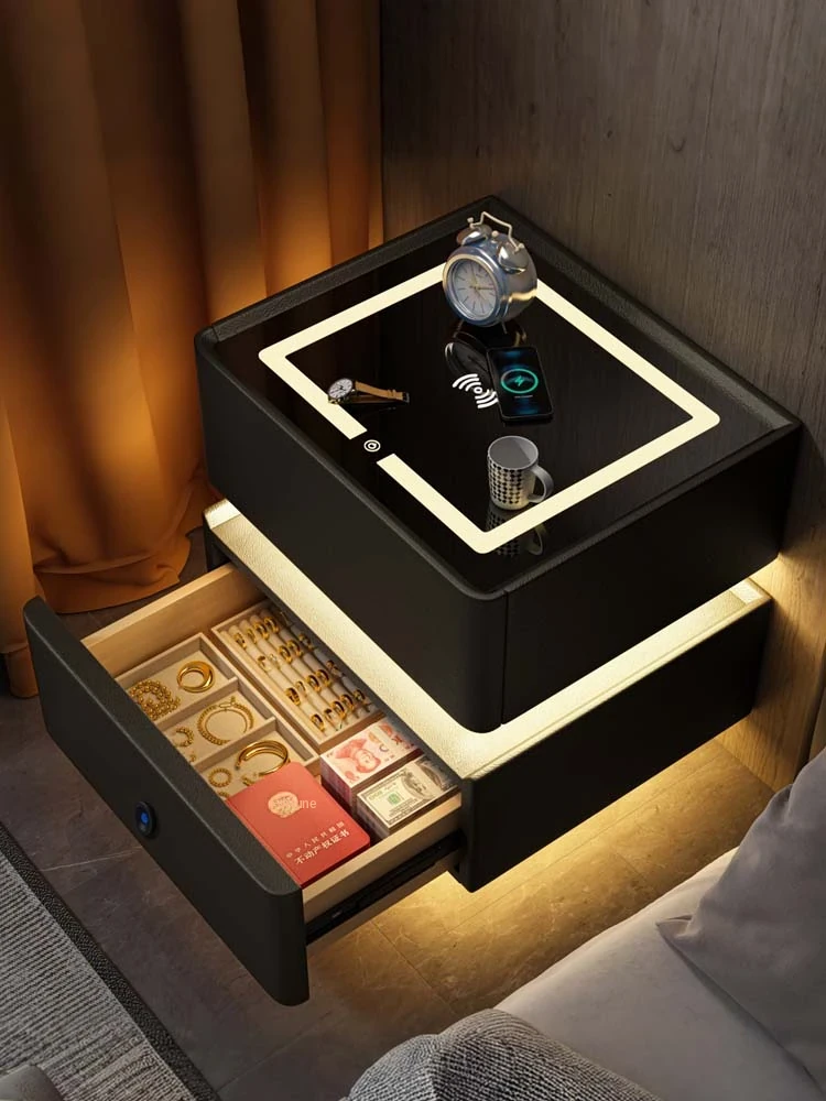 2025 New Black Smart Nightstand - Solid Wood with Wireless Charging, Stylish and Elegant Bedside Cabinet for Your Bedroom