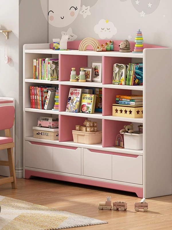 Children's Wooden Bookshelf - Multi-Layer Wall-Mounted Storage Rack for Picture Books and Toys, Home Use, Stylish and Functional Bookcase for Students