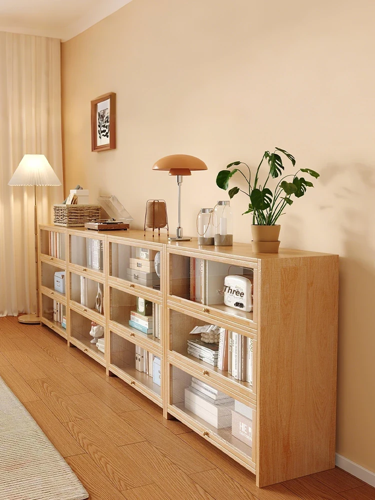 Modular Solid Wood Bookshelf - Versatile Wall-Mounted Storage Cabinet, Stylish Low Display Rack for Organized Living Spaces