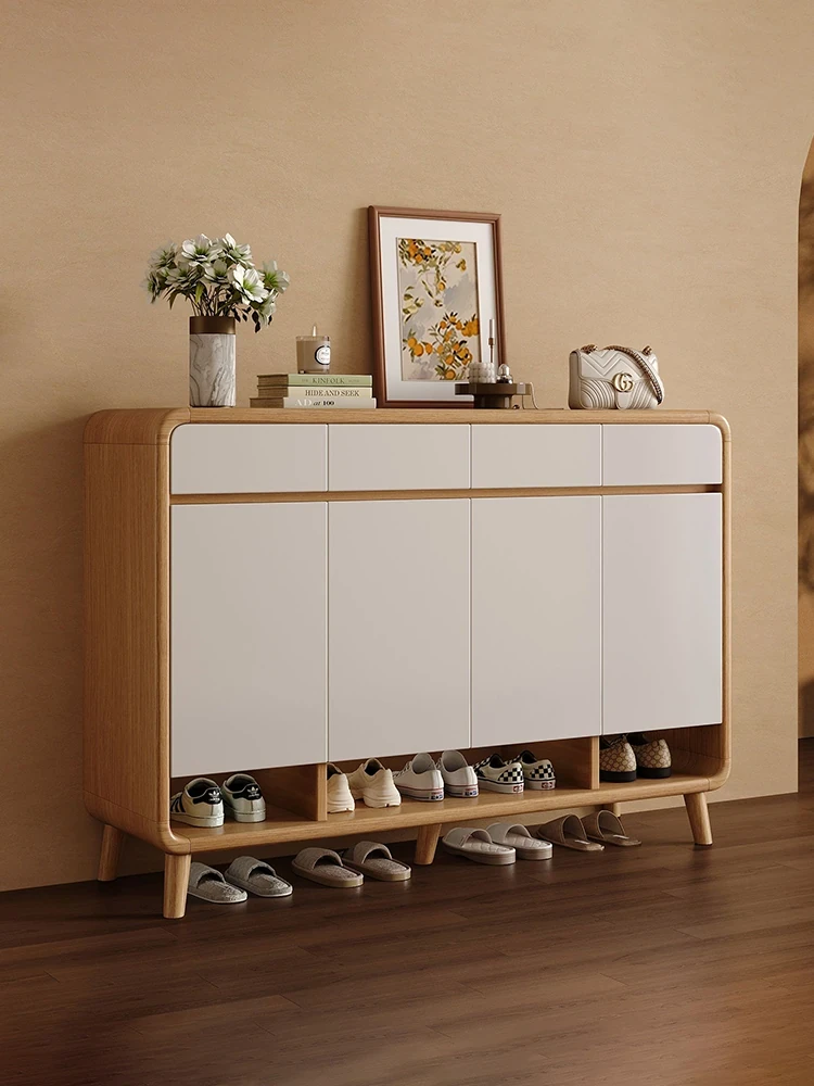 新型2025年モデル!実木製の靴収納キャビネット、玄関や廊下にぴったりフィット!シンプルでスタイリッシュなデザイン、家の入口を美しく整理整頓。あなたのライフスタイルをより快適に!
