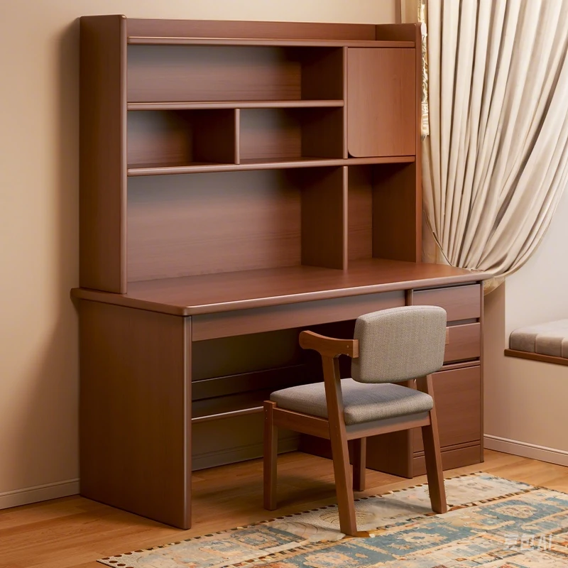 実木製の書斎デスク&書棚一体型!中高生に最適な学習机、書き物やパソコン用にもぴったり。スタイリッシュなデザインで、寝室や家庭での使用にも最適。大人にも使いやすい機能的なデスクです!