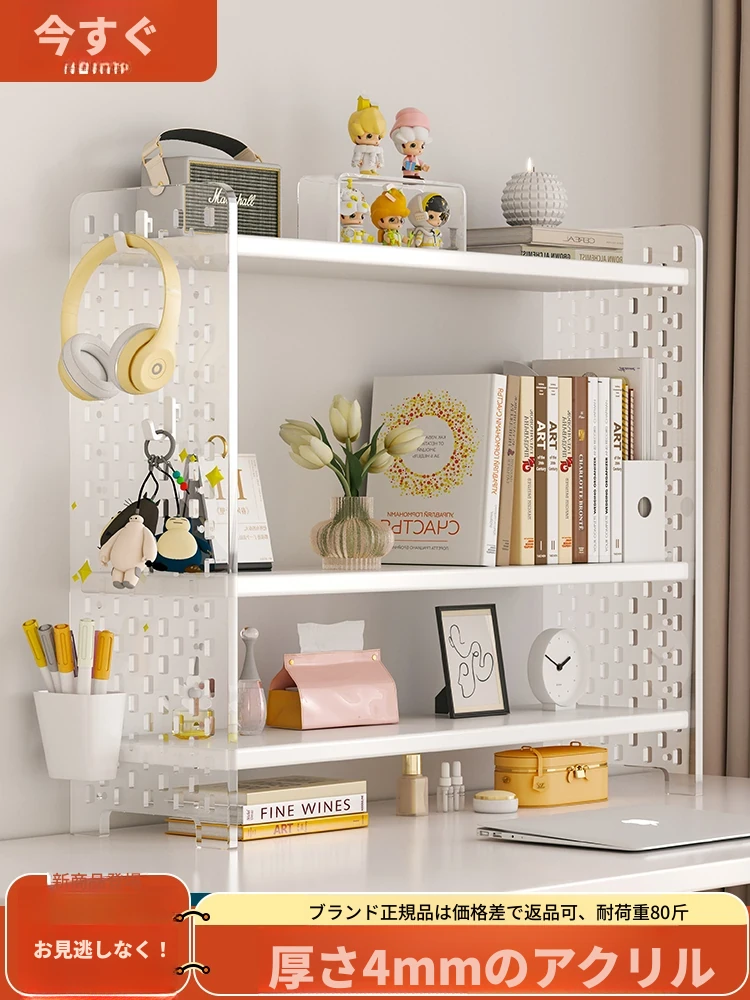 デスク用アクリル穴あきボード収納ラック - 家庭用・学生用書棚、多段階オフィスデスク整理に最適!おしゃれで機能的な収納で、作業スペースをスッキリ!
