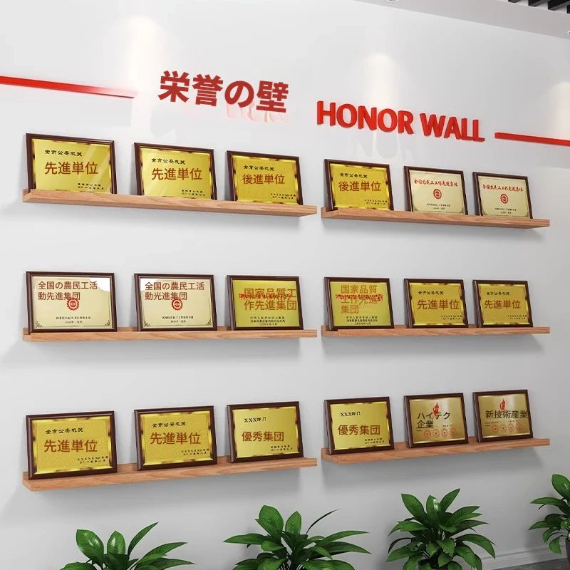企業の名誉を飾る!実木製ウォールマウント式ディスプレイラック - トロフィー、メダル、証明書を美しく展示する一文字仕切り棚。あなたの成功をアピールしましょう!