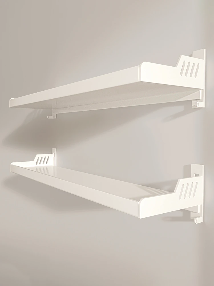 穴あけ不要!金属製ウォールシェルフ - スタイリッシュな一字型デザインで、キッチンやリビングに最適な多機能収納ラック!おしゃれに空間を活用して、すっきりとした暮らしを実現しましょう!