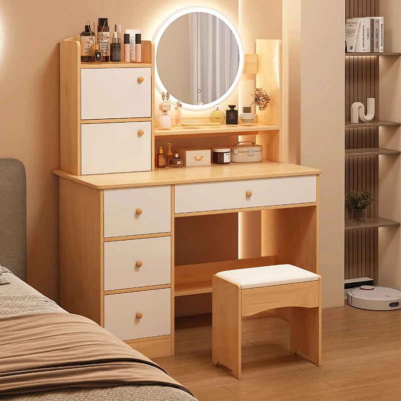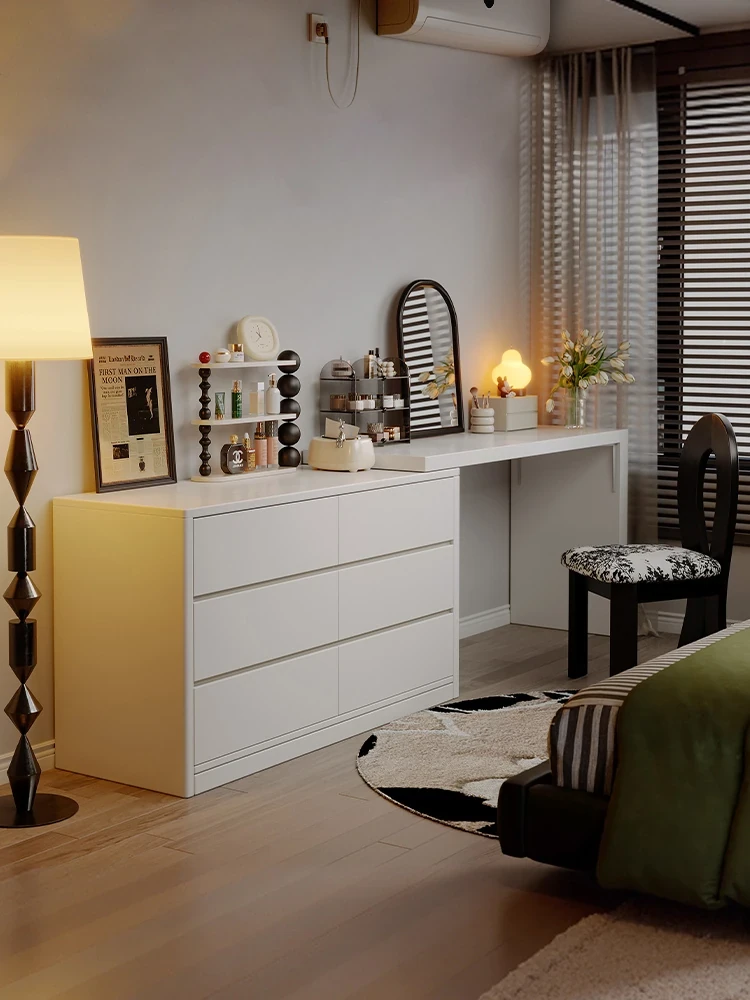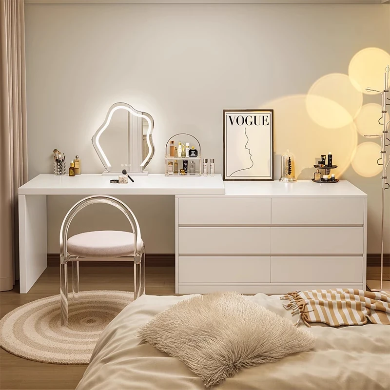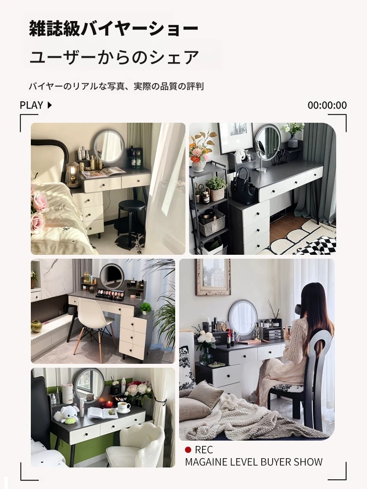 2025年新款!モダンな寝室にぴったりなシンプルなドレッシングテーブル。小型住宅にも最適な収納力抜群のサイドキャビネット一体型。美しいデザインで、あなたの毎日を特別に演出します!