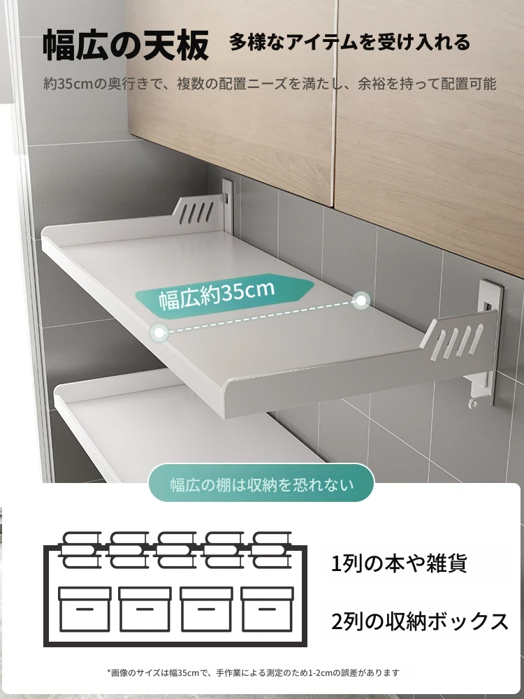 壁掛け収納棚 - 簡単取り付け、穴あけ不要!キッチンやトイレ、バルコニーに最適な空中収納。頑丈なカーボンスチール製で、スペースを有効活用し、スッキリ整理整頓!