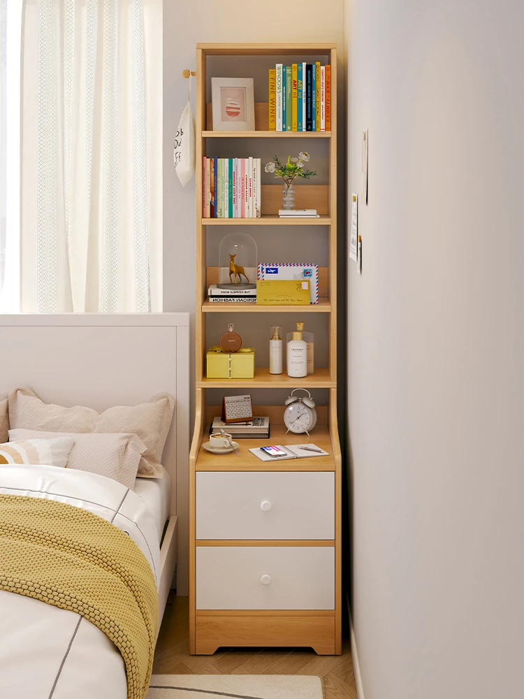 高さ調整可能なベッドサイドブックシェルフ収納キャビネット - お部屋の隅や角にぴったりフィット!スタイリッシュなデザインで、収納力抜群。あなたの生活空間をスッキリ整え、便利さと美しさを両立させます。